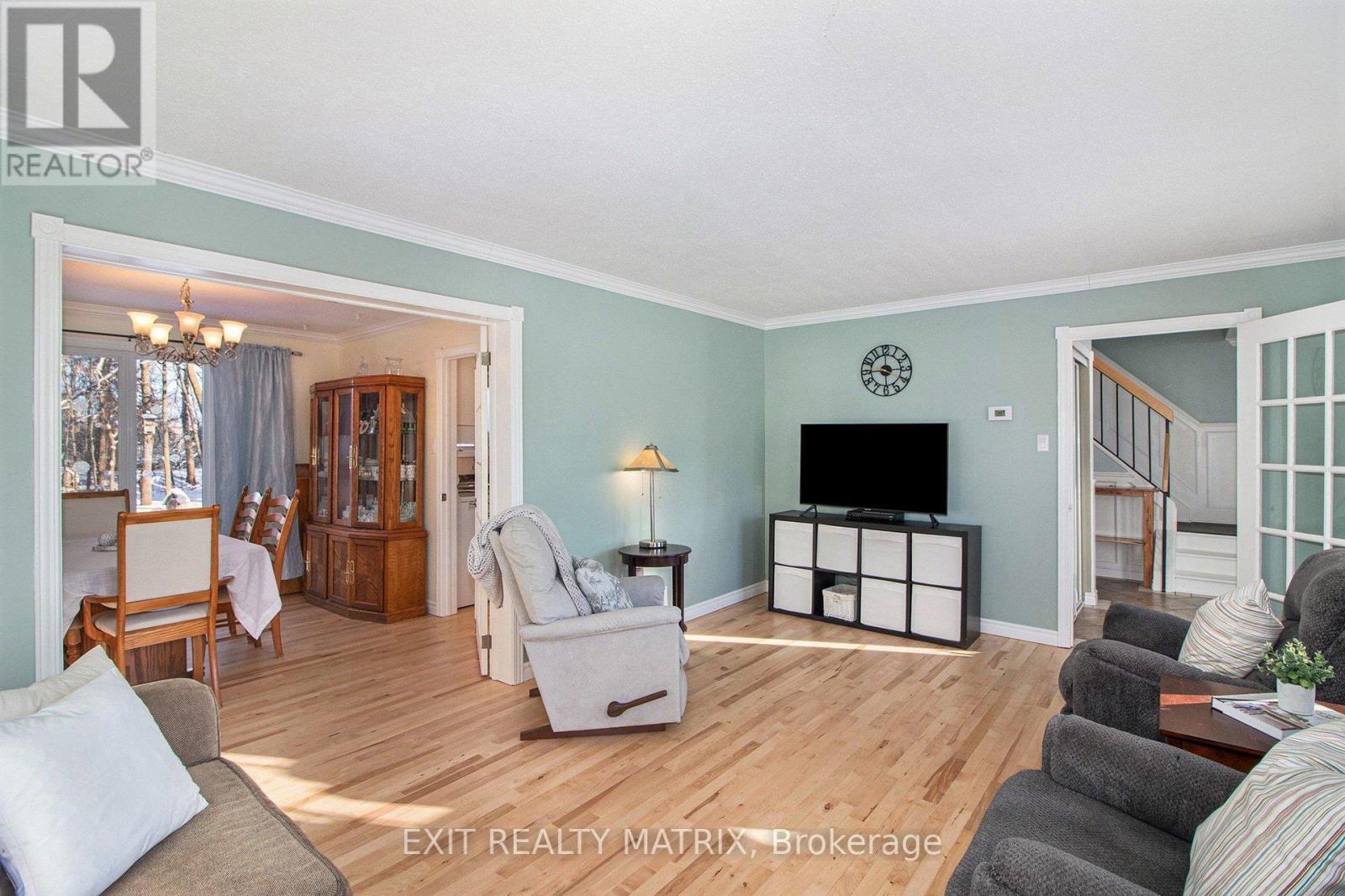 OPEN HOUSE SUNDAY, JAN. 18TH, 2-4 PM. This beautiful 4-bedroom, 2.5-bathroom family home sits on a premium lot backing onto tranquil mature trees and the New York Central Fitness Trail. Step into a warm, inviting foyer leading to your choice of entertaining areas. The spacious front living room flows to a formal dining space with newly refinished hardwood flooring, while the cozy rear family room with a wood-burning fireplace overlooking the backyard offers the perfect spot to relax. The bright kitchen with eat-in area is ideal for casual dining. A convenient powder room completes the main level. Upstairs, you'll find four generous bedrooms, including a primary suite with a 3-piece ensuite and an additional full bathroom. The fully finished lower level features a versatile space suitable for a home office, gym or hobby rooms, plus a large recreation room, a full laundry area and storage. Enjoy your own private retreat outdoors. The backyard includes an expansive deck (2024) and a hot tub in a private enclosure. The yard is landscaped and peaceful, with direct access to a walking/biking trail, pond with fish and raised garden beds. This home is ideal for families or anyone seeking comfort, privacy, and a seamless connection to nature within a charming, welcoming community. Minutes from the Russell Fair Grounds, arena, schools, library, conservation area, sports dome, Keith M. Boyd park & playground, restaurants, cafe and more. Showings by appointment only. Don't miss this one! (id:49712)