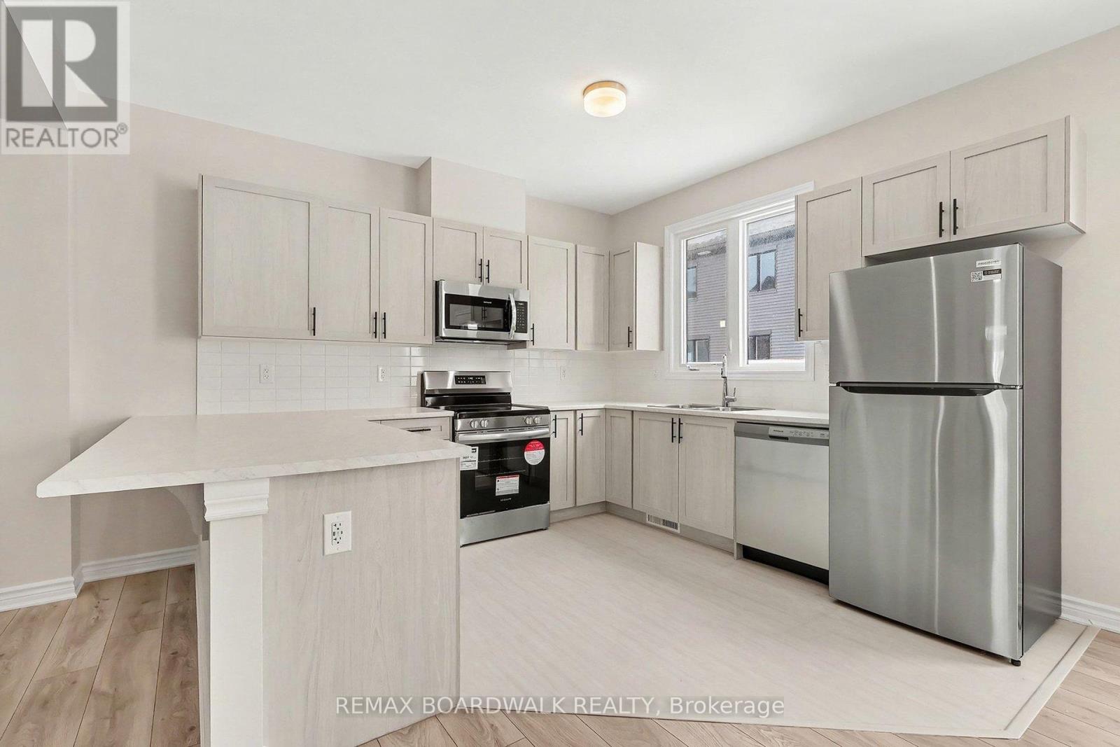 FOR RENT Orleans Mer-Bleue Rd Brand New 3 Bedroom 4 Bathroom Townhouse, located in a vibrant, family-friendly area situated in Broadcast Ave & Ryan Reynolds Way. Built with the contemporary charm of the Caivan model, this spacious home is thoughtfully designed with an open-concept layout and upscale modern finishes. Upon entry, you'll be greeted by a bright and inviting main floor, featuring a spacious living area that flows seamlessly into a sleek kitchen equipped with stainless steel appliances. The second level boasts three generously sized bedrooms, including a large master bedroom complete with a walk-in closet and a luxurious 4-piece ensuite bathroom. Two additional bedrooms each with generous windows share a modern three piece bathroom. The finished basement offers a versatile family room with a stylish 3-piece bathroom, perfect for entertaining or even as an additional bedroom if needed. Outside, the attached garage provides convenient inside access. Enjoy the best of suburban living with easy access to nearby shops, quality schools, gym, dining, transit, and more. A truly rare opportunity to be the first to enjoy this brand-new, never lived in home. (id:49712)